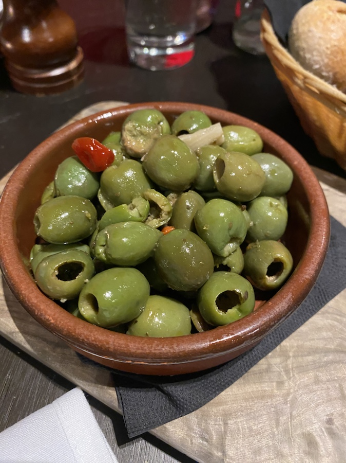 ➡️For appetizers we had bread with loads of butter and sautéed olives 🫒.