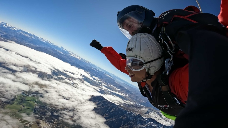 Remarkable” with a thrilling 40 second freefall followed by a 4 minute parachuting in NZ.
